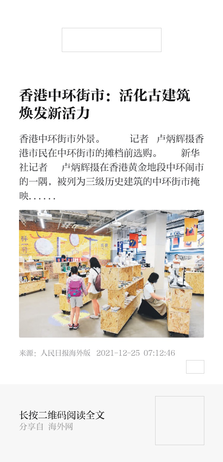 “看到那面颇富历史感的红砖墙、以前卸货区吊起猪牛羊的铁钩、称米的米磅,还有‘地面湿滑 敬请小心’那些以前墙上的标语,都令我好像穿越了时光,回到以前街市里的烟火气氛中去。”香港市民王太太是中环街市的老顾客。她说,记忆中还有和母亲一起来买菜的情景。如今,中环街市重开后,她偶尔也会带着小孙子来这里坐坐,和他说说以前的故事。