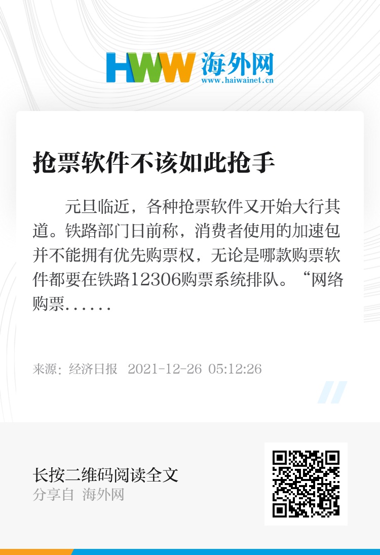 元旦临近,各种抢票软件又开始大行其道。铁路部门日前称,消费者使用的加速包并不能拥有优先购票权,无论是哪款购票软件都要在铁路12306购票系统排队。“网络购票难,买个加速包;看似在抢票,实际在抢钱。”抢票软件的营销套路应被公众识破,让抢票软件不再抢手,利于规范网络交易秩序,实现购票的机会公平。