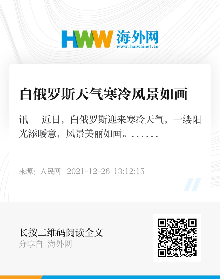 人民网讯 近日,白俄罗斯迎来寒冷天气,一缕阳光添暖意,风景美丽如画。