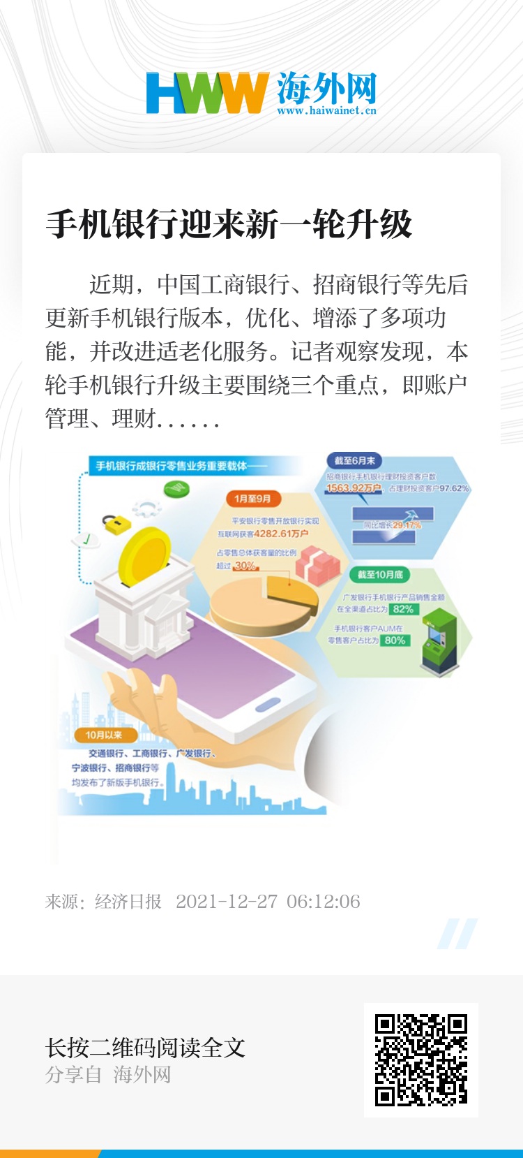 近期,中国工商银行、招商银行等先后更新手机银行版本,优化、增添了多项功能,并改进适老化服务。记者观察发现,本轮手机银行升级主要围绕三个重点,即账户管理、理财管理、融资管理,其核心逻辑是通过手机银行这一渠道,构建“金融+泛金融+生活”开放平台,更有效地触达用户、增加用户黏性、提升服务水平。