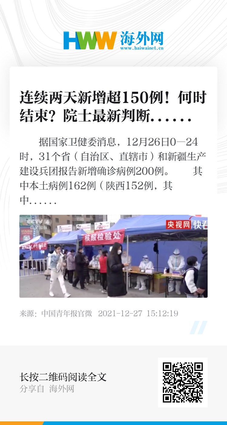 值得注意的是,陕西已连续两日新增超150例。据@人民日报 消息,自12月9日以来,陕西全省累计报告本土确诊病例651例。