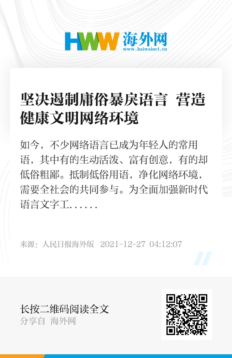 近几年,政府有关部门出台一系列举措整治网上违规行为,包括开展未成年人网络环境专项治理行动,力求营造清朗的网络空间。然而,在语言生活日益活跃的当下,促进网络语言的健康发展需要全社会的广泛参与。