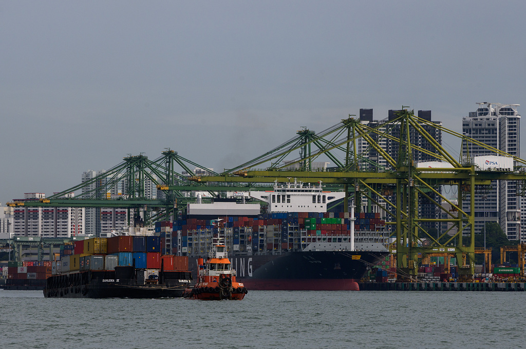 图为当地时间8月25日,新加坡海港的景象。图片来源:视觉中国