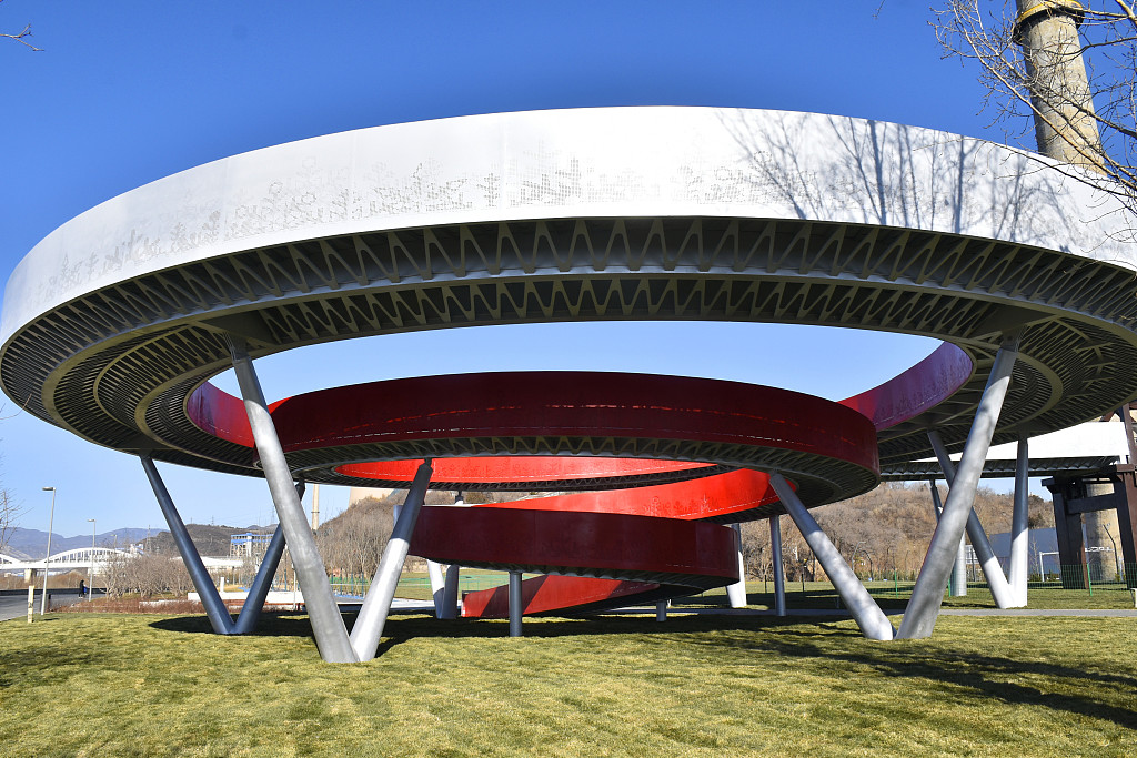 12月26日,北京冬奥公园标志性景观节点“冬奥之环”。据悉,“冬奥之环”和与之相连的高线公园将永定河和首钢园串联起来,实现生态园林与工业遗址的完美交融。图片来源:视觉中国