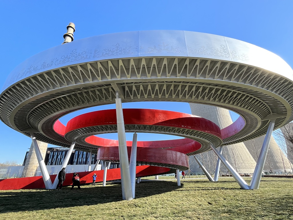 12月26日,北京冬奥公园标志性景观节点“冬奥之环”。据悉,“冬奥之环”和与之相连的高线公园将永定河和首钢园串联起来,实现生态园林与工业遗址的完美交融。图片来源:视觉中国