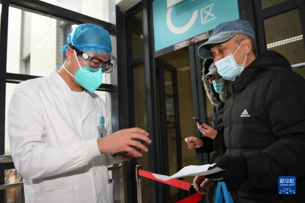12月27日,在西安交通大学第一附属医院,医护人员核查患者核酸检测结果。新华社记者 李一博 摄