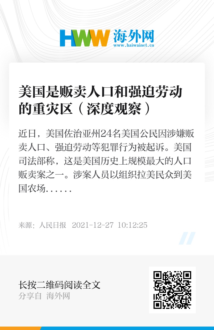 近日,美国佐治亚州24名美国公民因涉嫌贩卖人口、强迫劳动等犯罪行为被起诉。美国司法部称,这是美国历史上规模最大的人口贩卖案之一。涉案人员以组织拉美民众到美国农场工作为名,诱骗并强迫100多人以极低的薪酬在极其恶劣的环境下工作,最终导致至少两人死亡。