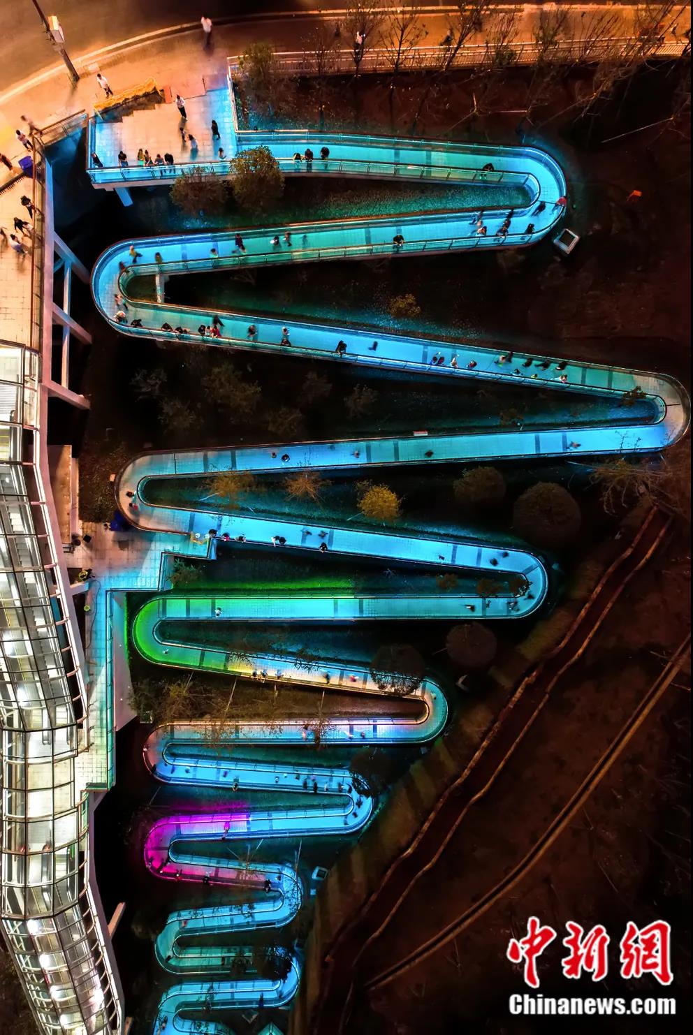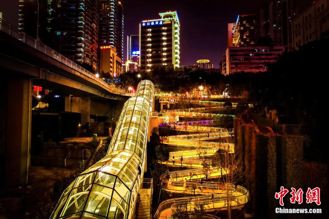 景观步道顺着崖壁蜿蜒曲折盘旋