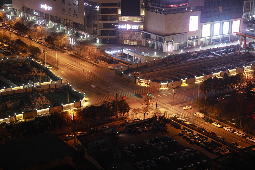 12月28日,西安。夜晚的十字路口,没有一辆行驶的汽车。图片来源:人民视觉
