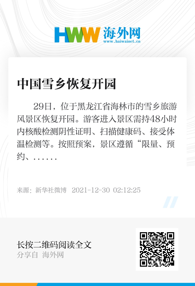 29日,位于黑龙江省海林市的雪乡旅游风景区恢复开园。游客进入景区需持48小时内核酸检测阴性证明、扫描健康码、接受体温检测等。按照预案,景区遵循“限量、预约、错峰”的要求,实时通过雪乡智慧指挥平台及时发布旅游高峰预警提示,合理分流游客。(记者董宝森、王松)
