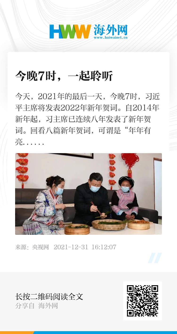 今天,2021年的最后一天,今晚7时,习近平主席将发表2022年新年贺词。