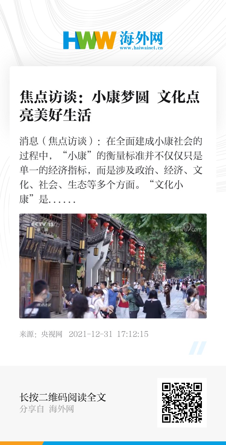 央视网消息(焦点访谈):在全面建成小康社会的过程中,“小康”的衡量标准并不仅仅只是单一的经济指标,而是涉及政治、经济、文化、社会、生态等多个方面。“文化小康”是全面建成小康社会的重要组成部分。文化是一个国家、一个民族的灵魂。对于一个城市来说,文化则为城市留下了独特的印记。守住城市的历史文化遗产,就守住了城市文脉的“根”与“魂”。