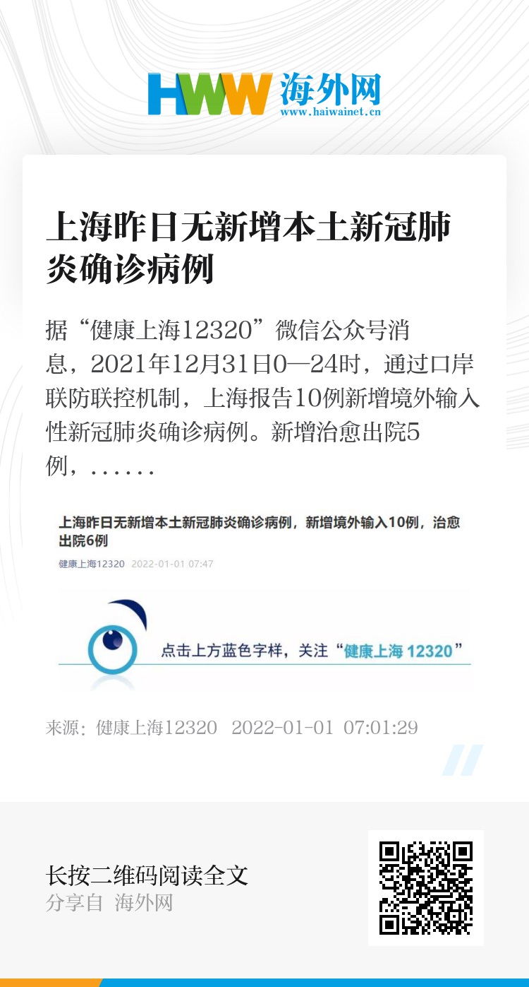 2021年12月31日0—24时,无新增本土新冠肺炎确诊病例。新增治愈出院1例。