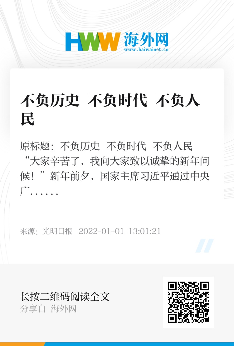 “大家辛苦了,我向大家致以诚挚的新年问候!”新年前夕,国家主席习近平通过中央广播电视总台和互联网,发表二〇二二年新年贺词,向全国人民、海外同胞、海外派驻人员、广大留学生和在太空“出差”的航天员等致以新年的美好祝福!