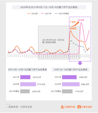 《报告》显示,在疫情偶有反复的2021年,影院在短暂关停后的重启,让压缩的观影意愿爆发式输出。例如,厦门全市影院在历经20天关停后于10月6日重启,当日票房高达673万,超过去年同期峰值,观影热情持续到了节后第一个周末。数据表明,在内容和档期合适的条件下,用户仍有大量观影意愿有待释放。