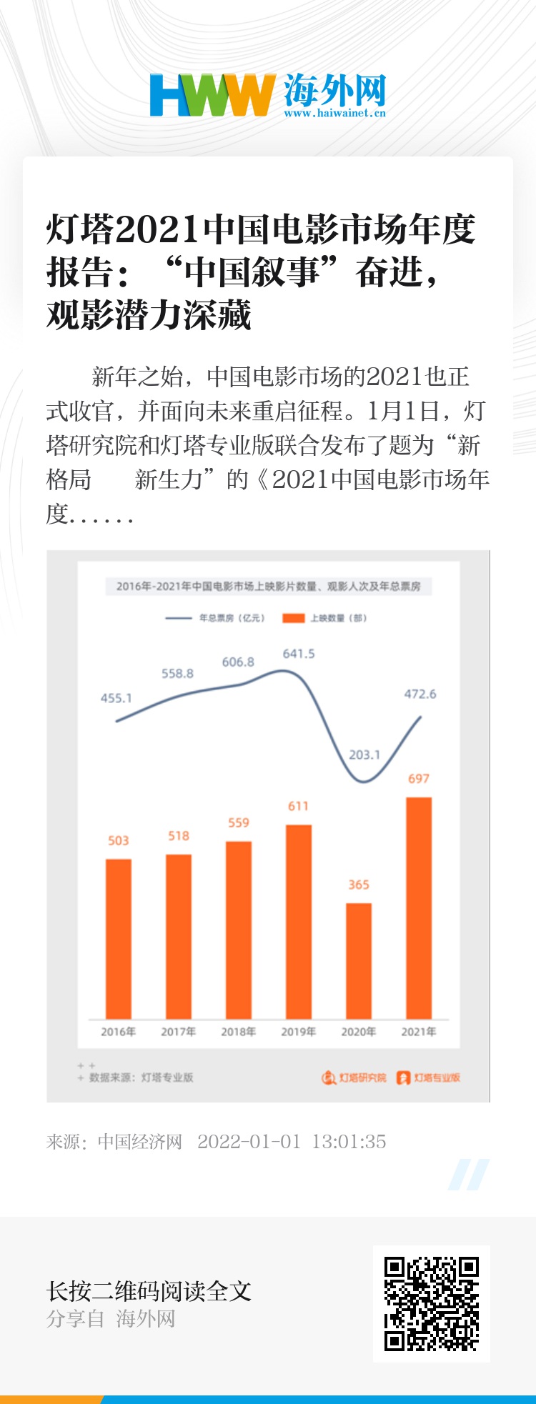 新年之始,中国电影市场的2021也正式收官,并面向未来重启征程。1月1日,灯塔研究院和灯塔专业版联合发布了题为“新格局 新生力”的《2021中国电影市场年度报告》,对过去一年行业发展进行总结盘点,同时也将视角对准未来的市场格局,聚焦于行业对新档期和潜在观影动力的探索与挖掘。