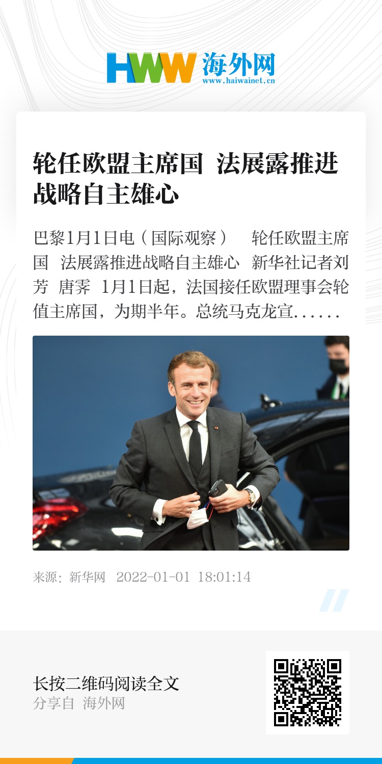 新华社巴黎1月1日电(国际观察)轮任欧盟主席国 法展露推进战略自主雄心