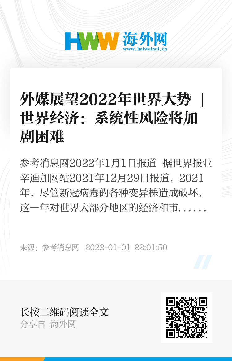 参考消息网2022年1月1日报道 据世界报业辛迪加网站2021年12月29日报道,2021年,尽管新冠病毒的各种变异株造成破坏,这一年对世界大部分地区的经济和市场来说却是相对积极的一年。经过2020年的严重衰退,经济增速超出潜力,金融市场强劲复苏。美国尤其如此,部分原因是美联储实行超宽松的货币政策。