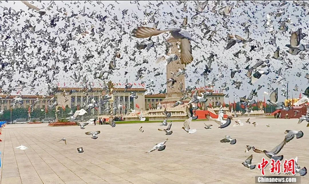 在朝阳的辉映下,伴随着五星红旗的冉冉升起,万羽和平鸽在金碧辉煌的天安门城楼前腾空而起,翱翔在蓝天之下。这一让人熟悉的美好画面,成为中华民族热爱和平、中国和平盛世的最经典写照。