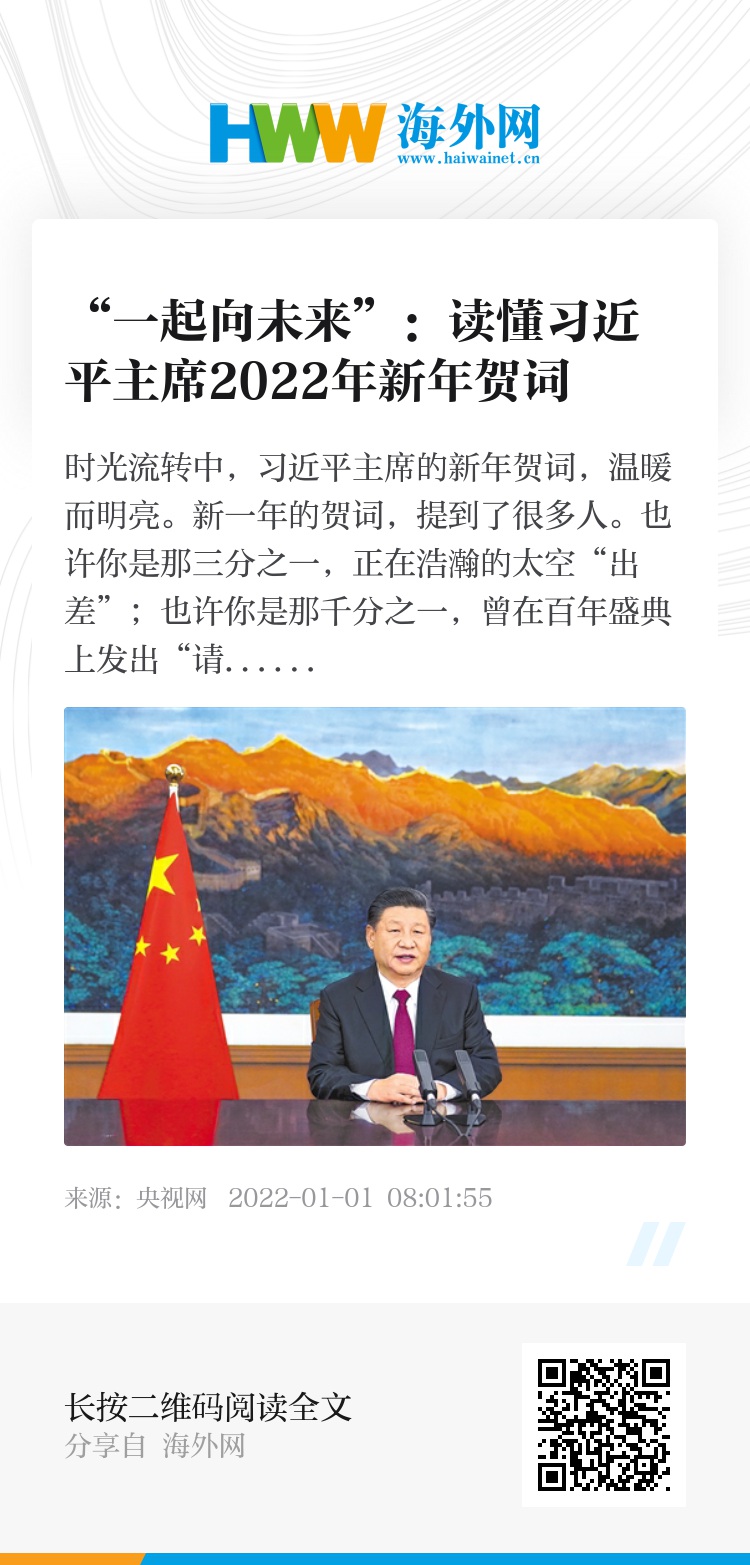 在2022年新年贺词中,习主席谈到了仍在辛勤耕耘的海外同胞,谈到了仍在勇毅坚守的使领馆、中资企业等海外派驻人员和广大留学生。疫情来袭,却身处海外,他们是祖国深深的牵挂,祖国是他们坚强的后盾!