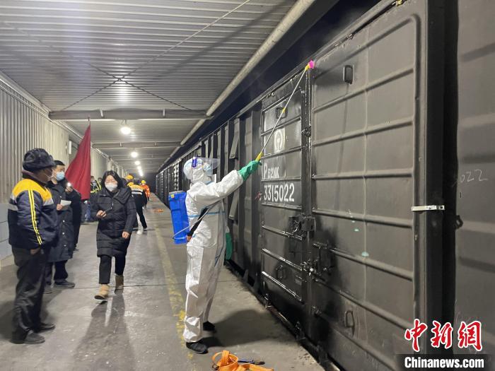 图为西安西站工作人员为列车消毒。 钟翰林 摄