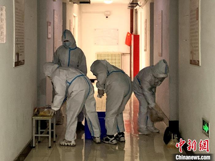 陈一凡是西安医学院外国语学院的学生,也是学校封闭宿舍管理期间的志愿者。“我负责给宿舍分发一日三餐、打开水、清理生活垃圾。累,但能帮到同学们会很开心。”每日早晨七点,陈一凡穿好防护服,就开始了清点、送餐、清理、装运等工作。