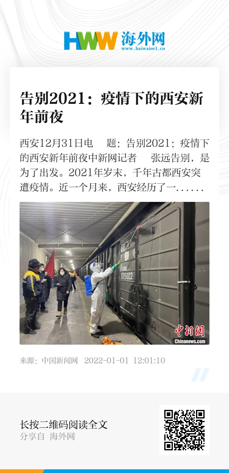 “今晚我在单位迎接新年。告别2021,希望西安尽快战胜疫情,西安加油!”钟翰林说。