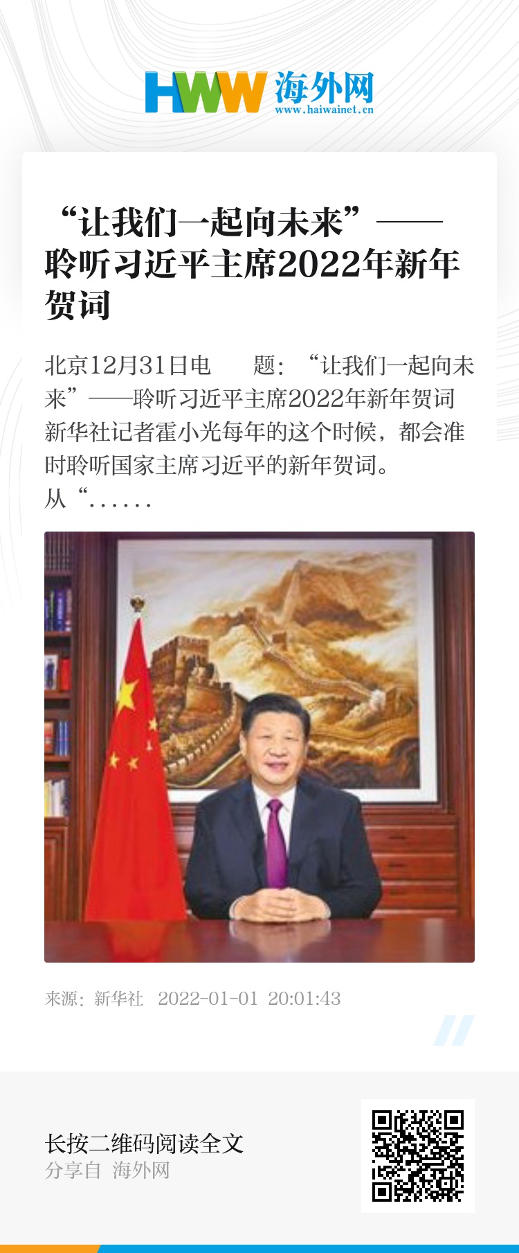 新华社北京12月31日电 题:“让我们一起向未来”——聆听习近平主席2022年新年贺词