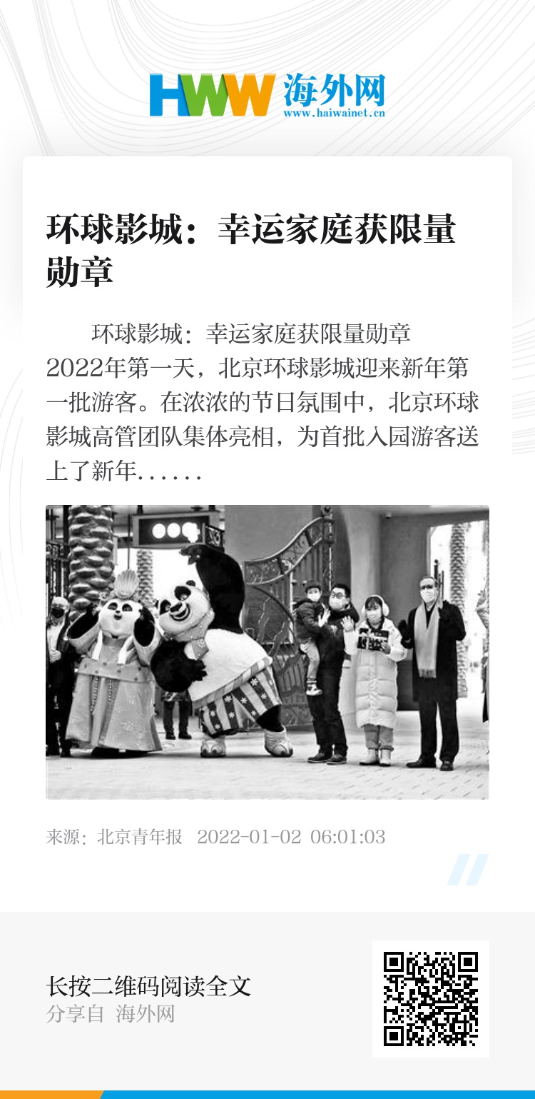 2022年第一天,北京环球影城迎来新年第一批游客。在浓浓的节日氛围中,北京环球影城高管团队集体亮相,为首批入园游客送上了新年的祝福。现场还产生了新年首个幸运家庭,赵先生一家三口获得了环球影城限量款勋章。