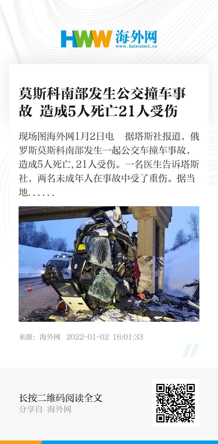 32308818,.莫斯科南部发生公交撞车事故 造成5人死亡21人受伤,.2022-01-02 16:55:33,.204356,.李芳、赵宽