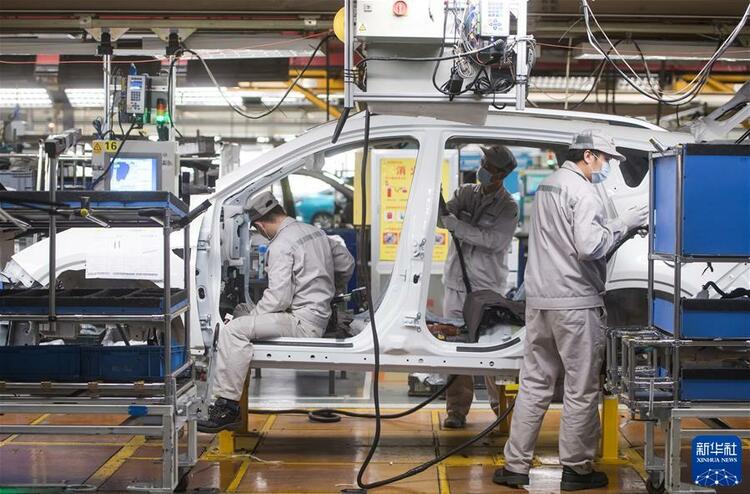 工人在湖北武汉东风乘用车公司工厂总装车间的流水线上作业(2020年3月24日摄)。 新华社记者 肖艺九 摄