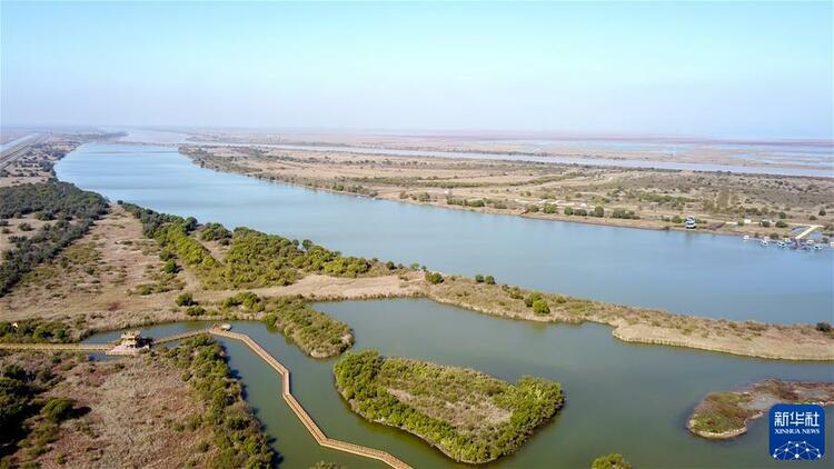 江苏泰兴市虹桥镇长江生态湿地风光带景色(2021年11月11日摄,无人机照片)。 新华社记者 杨磊 摄