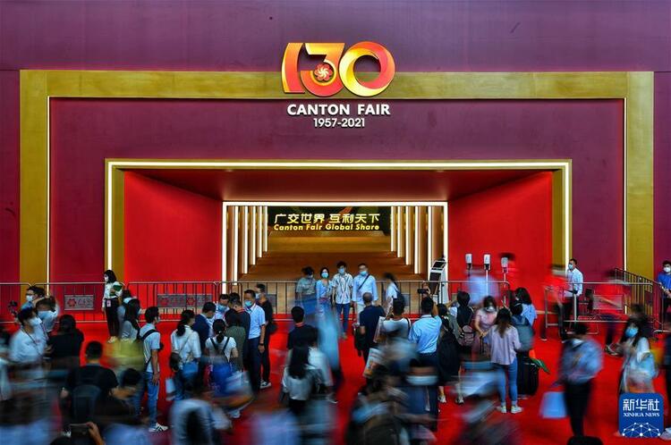 参展人员在第130届广交会现场(2021年10月15日摄)。 新华社记者 刘大伟 摄