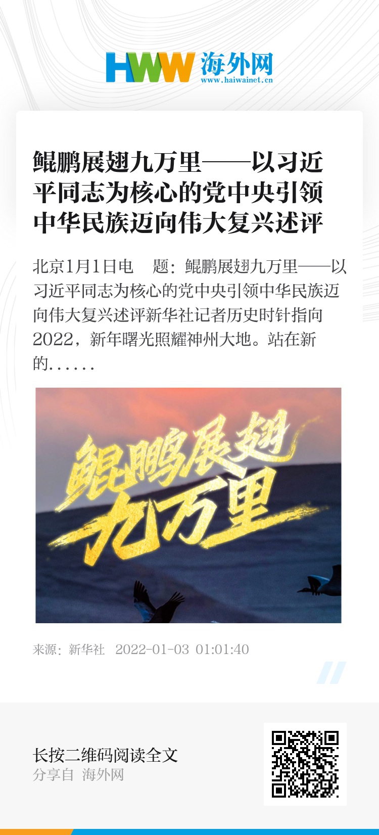 新华社北京1月1日电 题:鲲鹏展翅九万里——以习近平同志为核心的党中央引领中华民族迈向伟大复兴述评