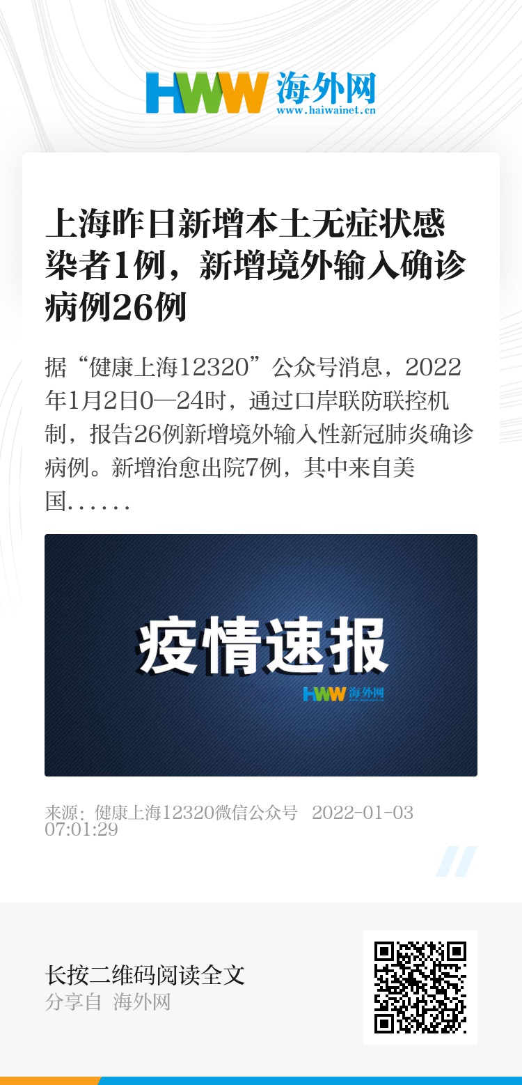 2022年1月2日0—24时,新增本土无症状感染者1例。