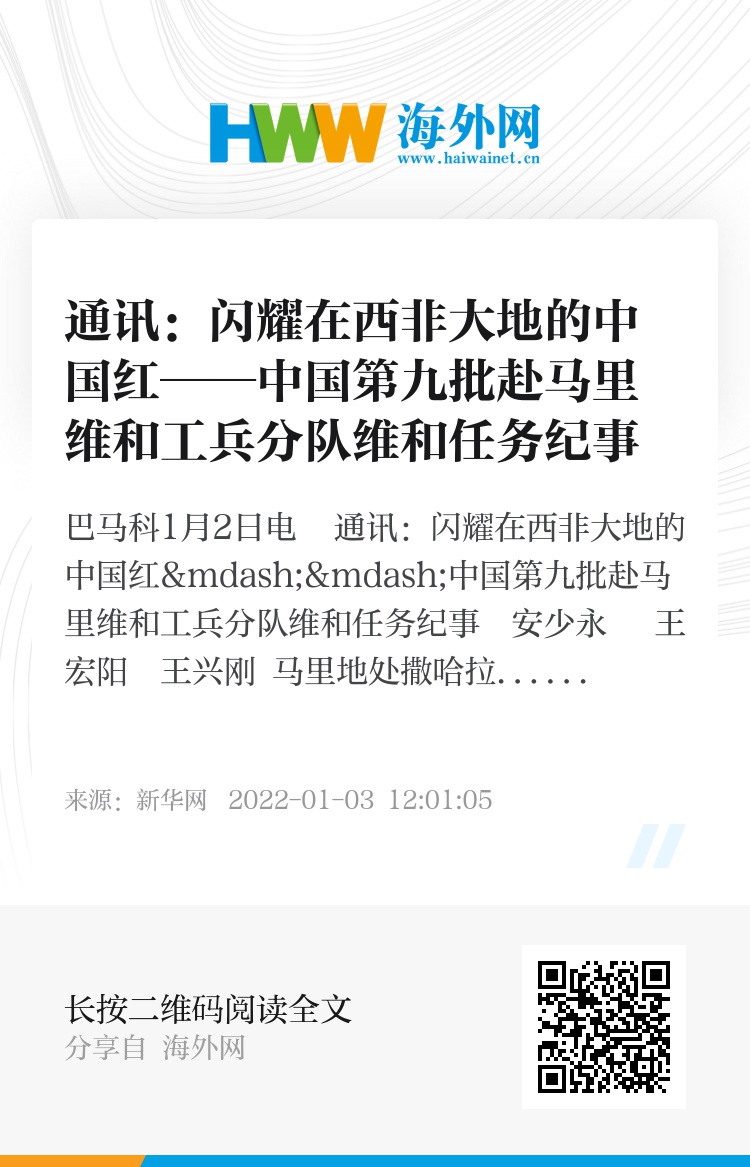 新华社巴马科1月2日电 通讯:闪耀在西非大地的中国红——中国第九批赴马里维和工兵分队维和任务纪事