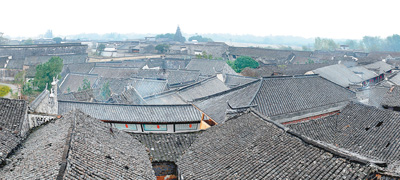 桐城孔城老街俯瞰。孔城老街全长2.2公里,是安徽最长也是保存最完整的古街之一。