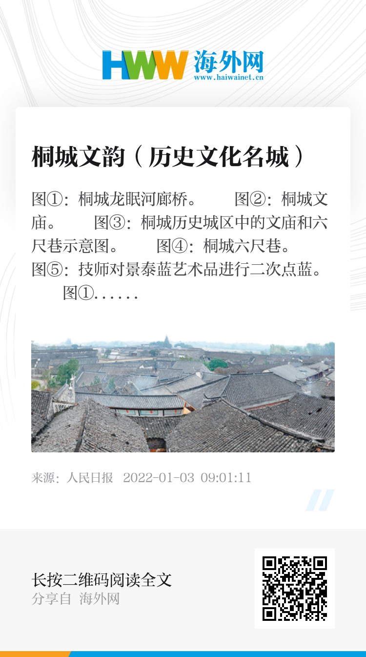 2021年11月12日,国务院批复同意将安徽省桐城市列为国家历史文化名城。桐城成为我国第138座国家历史文化名城。
