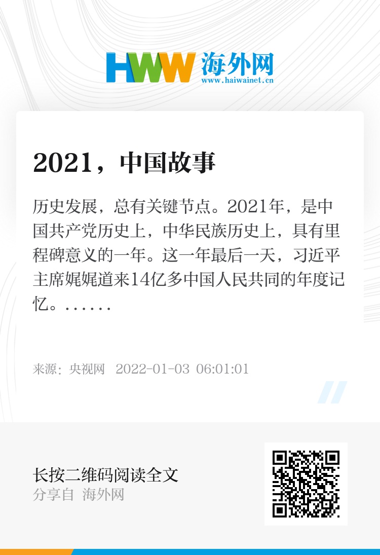 回顾2021年,中国人民写就的这些中国故事,充分展现了中国精神、中国力量,更赢得了世界尊重。