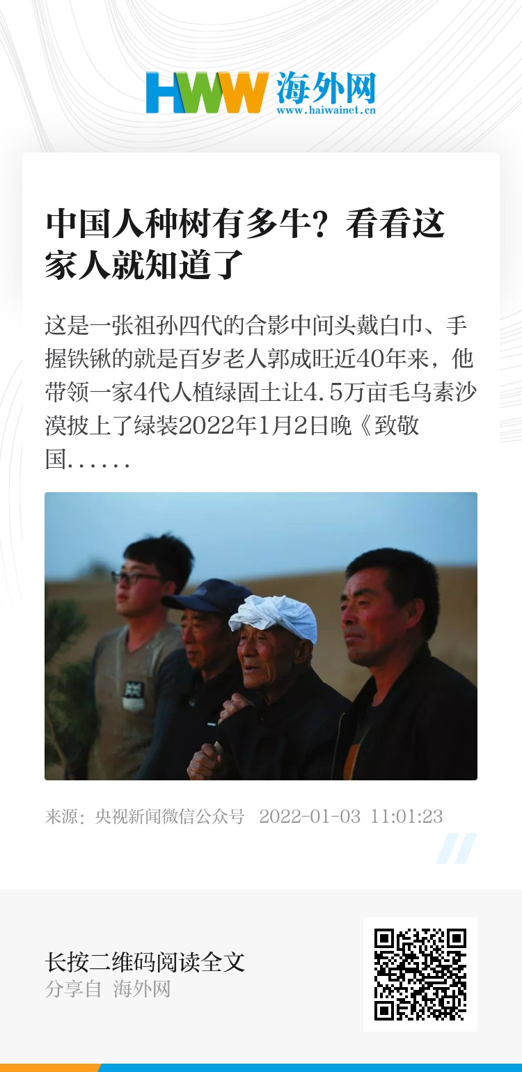 郭成旺一家人让4.5万亩沙漠变成绿洲