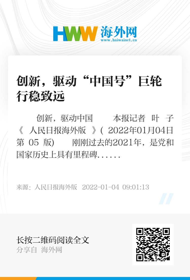 创新是一个国家、一个民族发展进步的不竭动力。回首去年,中国创新事业蓬勃发展,创新成果熠熠生辉。未来,创新还将继续驱动“中国号”巨轮行稳致远。