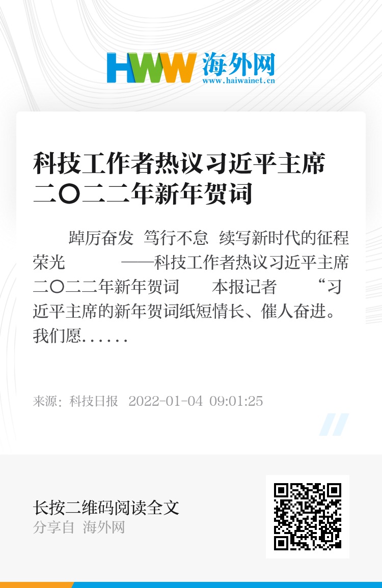 ——科技工作者热议习近平主席二〇二二年新年贺词