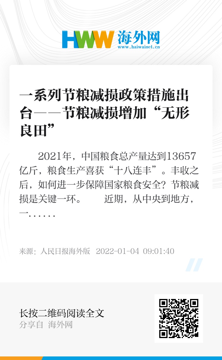 2021年,中国粮食总产量达到13657亿斤,粮食生产喜获“十八连丰”。丰收之后,如何进一步保障国家粮食安全?节粮减损是关键一环。