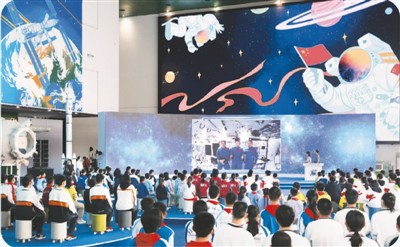 2021年12月9日,“天宫课堂”第一课开课,学生们在北京中国科技馆听课。