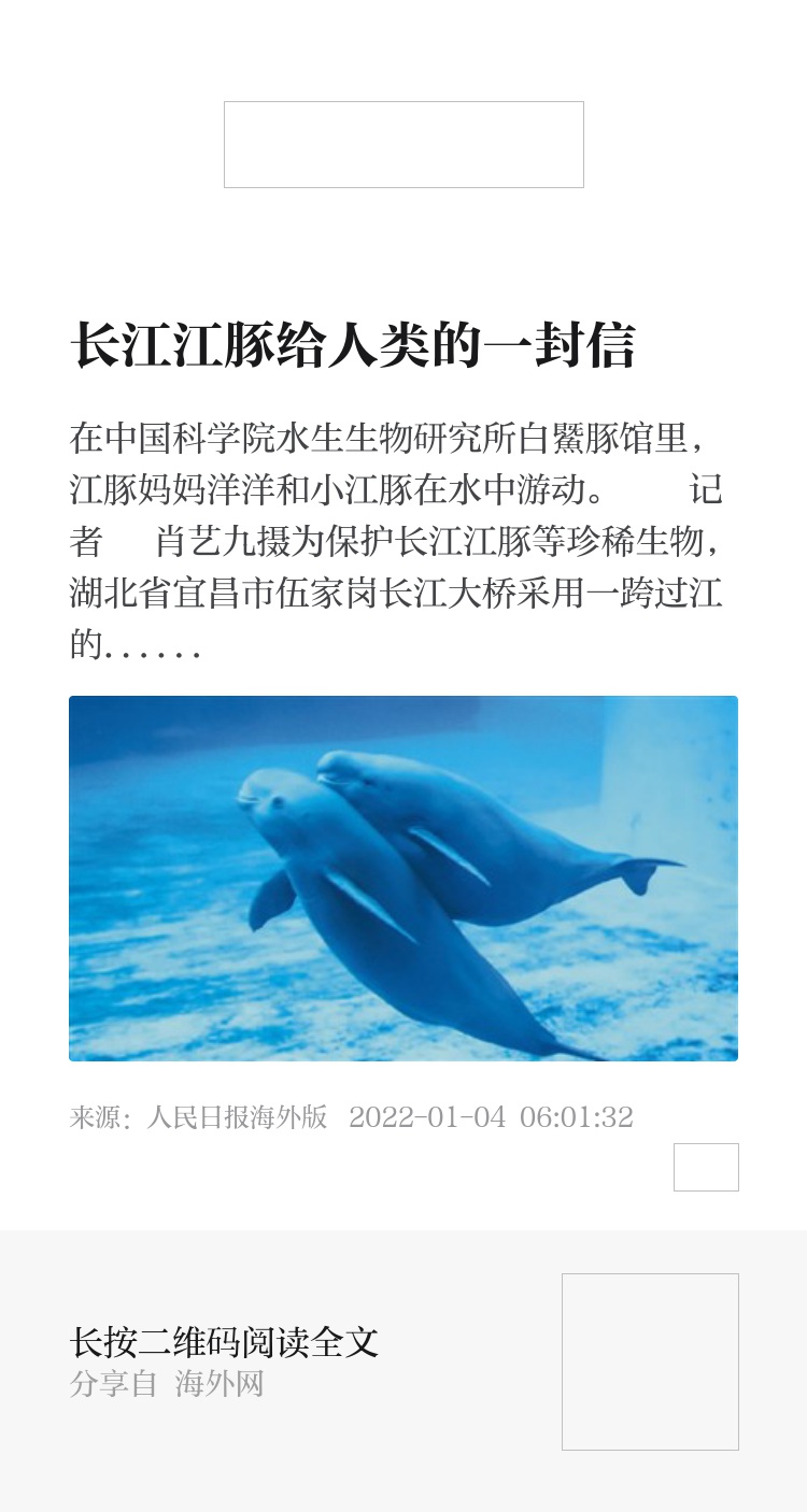 当您看到这封信的时候,我正和小伙伴们在长江湖北石首段北岸的一个月牙形的半封闭湖泊中快乐地嬉戏、遨游。这里没有频繁来往、发出巨大轰鸣的航船,没有五花八门的渔具和钓钩,只有日夜守护着我们的巡护人员。
