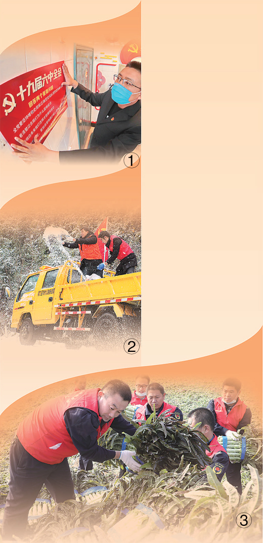 图③:山东临沂市沂南县辛集镇,党员志愿者帮助农户收莴苣。