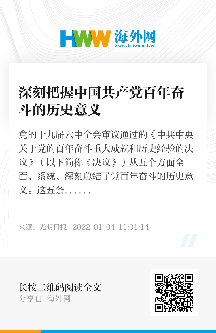 党的十九届六中全会审议通过的《中共中央关于党的百年奋斗重大成就和历史经验的决议》(以下简称《决议》)从五个方面全面、系统、深刻总结了党百年奋斗的历史意义。这五条概括贯通了中国共产党百年奋斗的历史逻辑、理论逻辑、实践逻辑。在党史学习教育中,深刻把握党百年奋斗的历史意义,是实现从总结历史到开辟未来的一个重要环节。