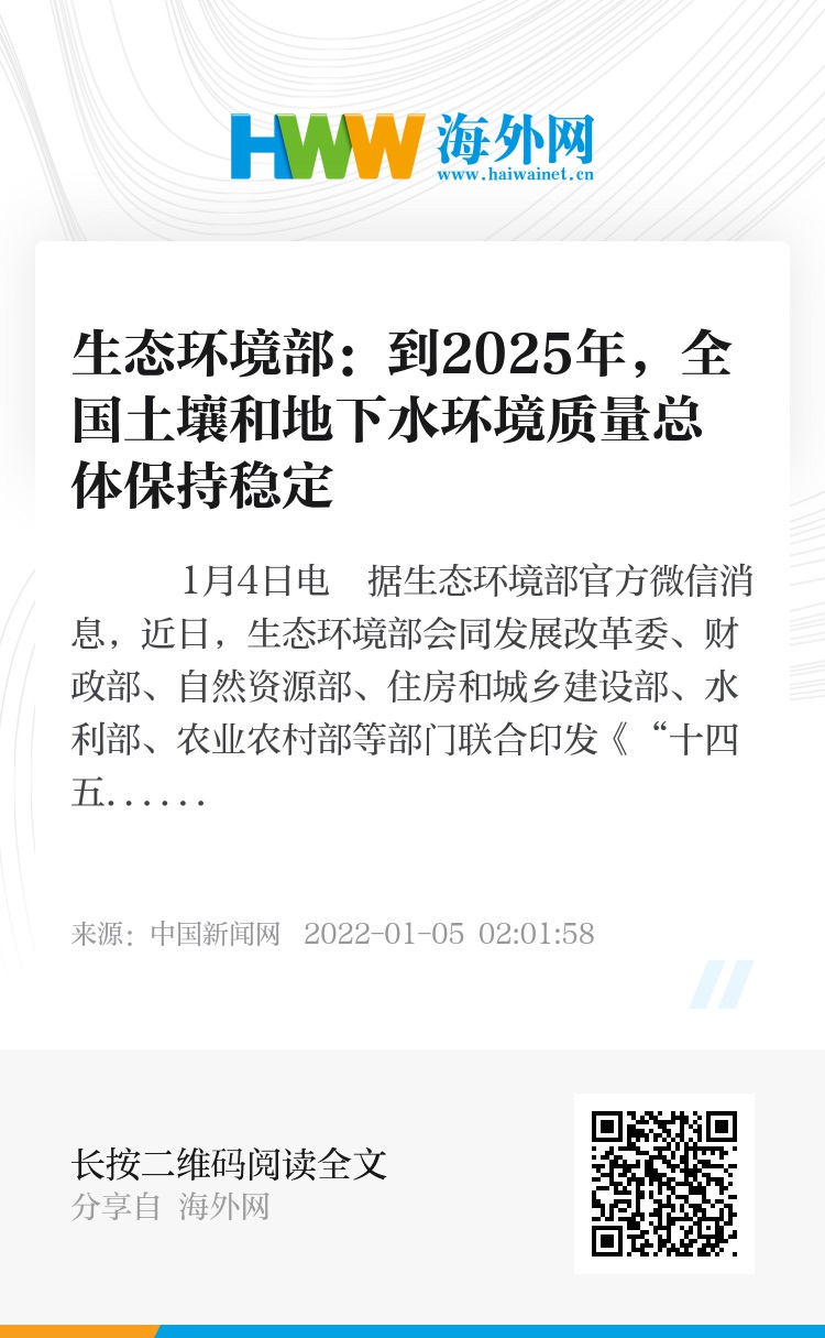 中新网1月4日电 据生态环境部官方微信消息,近日,生态环境部会同发展改革委、财政部、自然资源部、住房和城乡建设部、水利部、农业农村部等部门联合印发《“十四五”土壤、地下水和农村生态环境保护规划》(以下简称《规划》)。生态环境部有关负责人就《规划》编制背景、总体要求、主要内容等回答了记者提问。