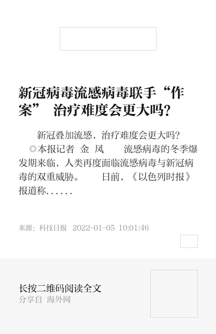 日前,《以色列时报》报道称,该国一名孕妇被发现同时感染了新冠和流感病毒,这是以色列首例“共同感染”病例。不过,该媒体特别指出,“一些报道称,这是世界上首例此类双重感染病例,但早在2020年春季,美国就出现了流感和新冠共同患者的报道”。