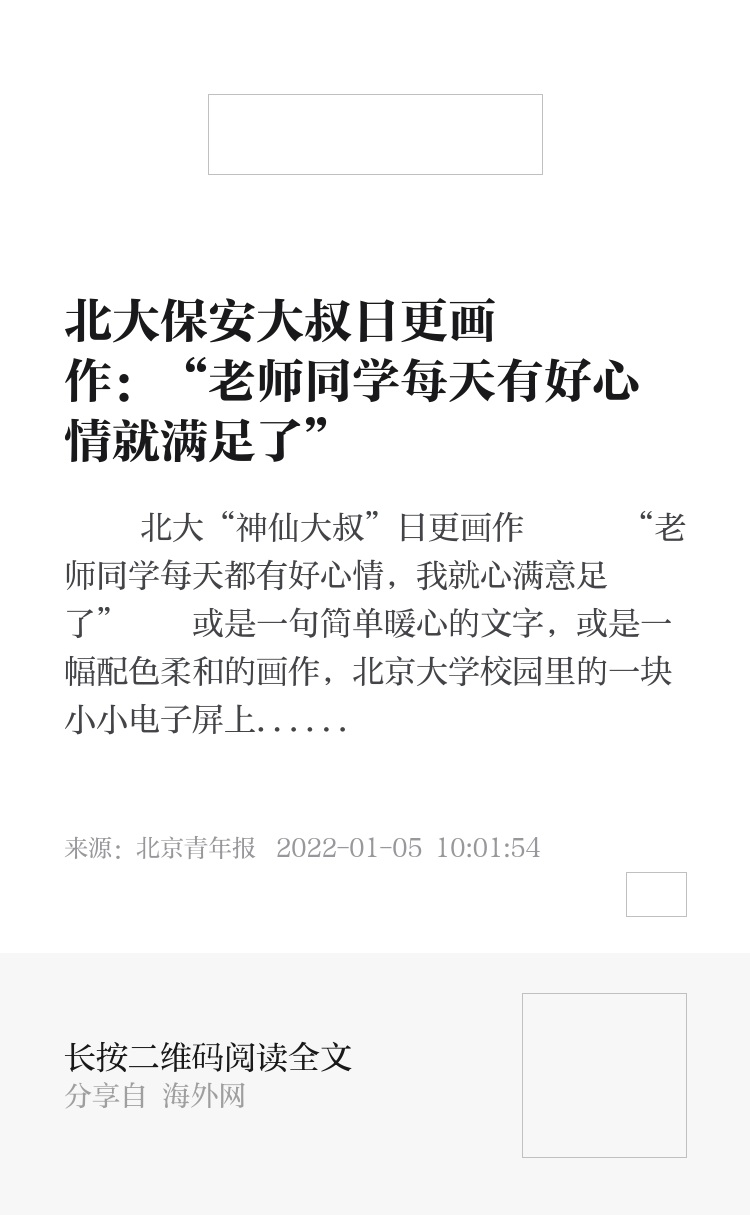 或是一句简单暖心的文字,或是一幅配色柔和的画作,北京大学校园里的一块小小电子屏上,每天都有不一样的惊喜和感动在等待着同学们,为他们紧张繁忙的学习生活增添一抹趣味。而这些治愈人心的画作,皆出自一位北大保安之手,他是同学口中的“神仙大叔”,也是“光华扫地僧”。